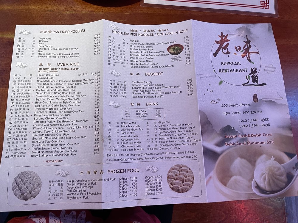 Supreme Restaurant at 100 Mott St in New York City is a must-visit spot for Shanghainese dim sum lovers. With rave reviews from customers praising their tasty soup dumplings, like the Crab Meat and Pork varieties, this restaurant is a gem for those craving authentic Shanghai cuisine. The Vegetarian Mock Duck and Wontons Szechuan Style are also top picks for appetizers. The menu offers a wide range of options, including Pan Fried Lo Mein Noodles and Scallion Pancake with Aromatic Beef. The ambiance is casual and comfortable, perfect for a meal with friends or family. With quick service, reasonable prices, and large portions, Supreme Restaurant stands out as a go-to spot for affordable and delicious Shanghainese fare.